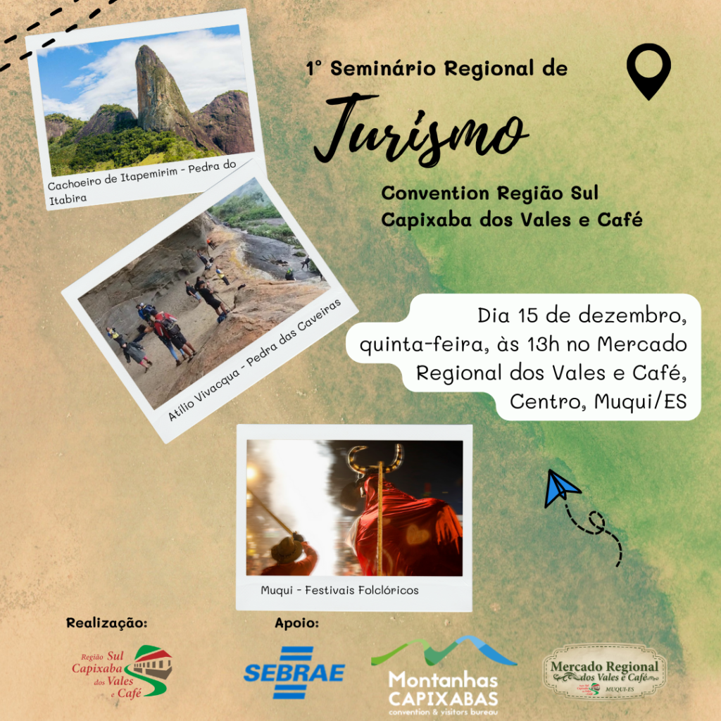 O Convention realizou no dia 15 de dezembro de 2022, no Mercado Regional dos Vales e Café em Muqui, o seu 1º Seminário de Turismo Regional. O evento contou com autoridades e representantes do Turismo dos 6 (seis) Municípios da Região Sul Capixaba e teve como proposta a integração dos Municípios para a absorção de conhecimentos para a estruturação de projetos turísticos que valorizem a Região.