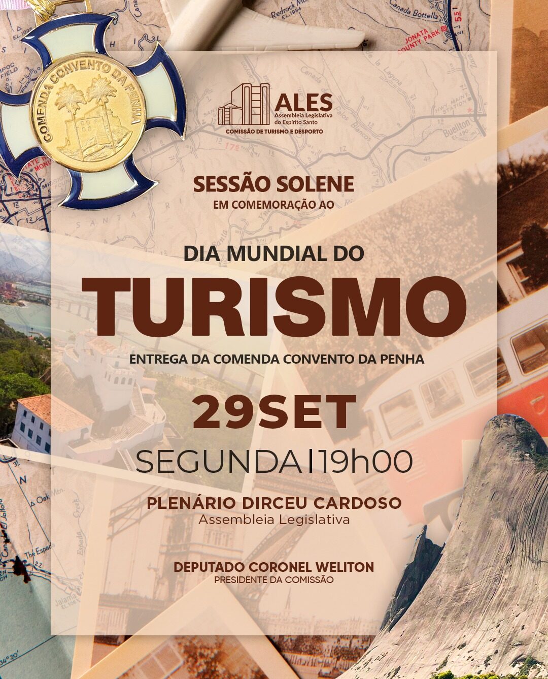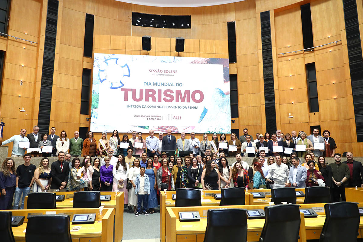 Uma grande honraria para a Região Sul Capixaba dos Vales e Café e seu desempenho no Turismo! A convite do Deputado Coronel Weliton (PRD), Presidente da Comissão de Turismo e Desporto da Assembleia Legislativa do Espírito Santo, uma sessão solene marcada por reconhecimento e emoção foi realizada na última segunda-feira (29), em comemoração ao Dia Mundial do Turismo (27). Esta cerimônia, descrita como um momento de reconhecimento e valorização do Turismo como força motriz para o desensolvimento econômico, cultural e social do nosso Estado, destacou personalidades que contribuem para o fortalecimento do Turismo, da cultura e da gestão pública, com a entrega da Comenda Convento da Penha, uma das maiores condecorações concedidas pelo Legislativo capixaba.